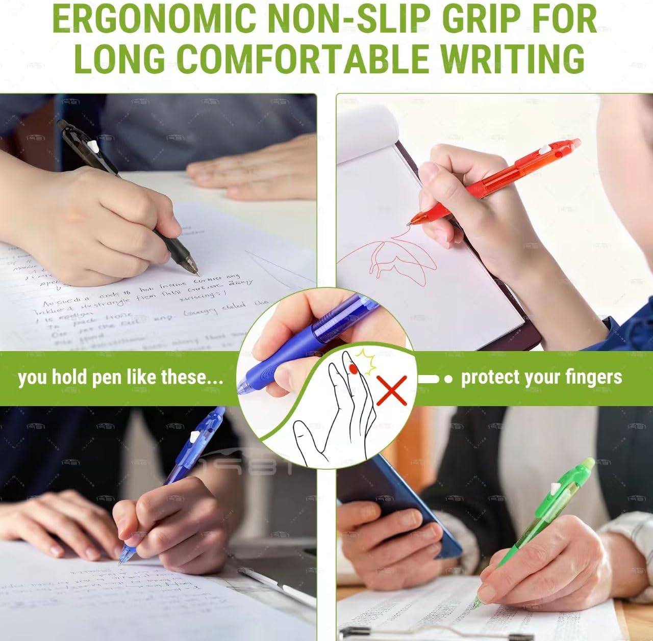 SMOOTH & ERASABLE WRITING: Write, erase, and rewrite freely. These erasable pens use thermo-sensitive ink that can be cleanly erased through friction—no paper damage, no residue. Enjoy smooth ink flow like gel pens with clean erasing performance similar to a pencil.