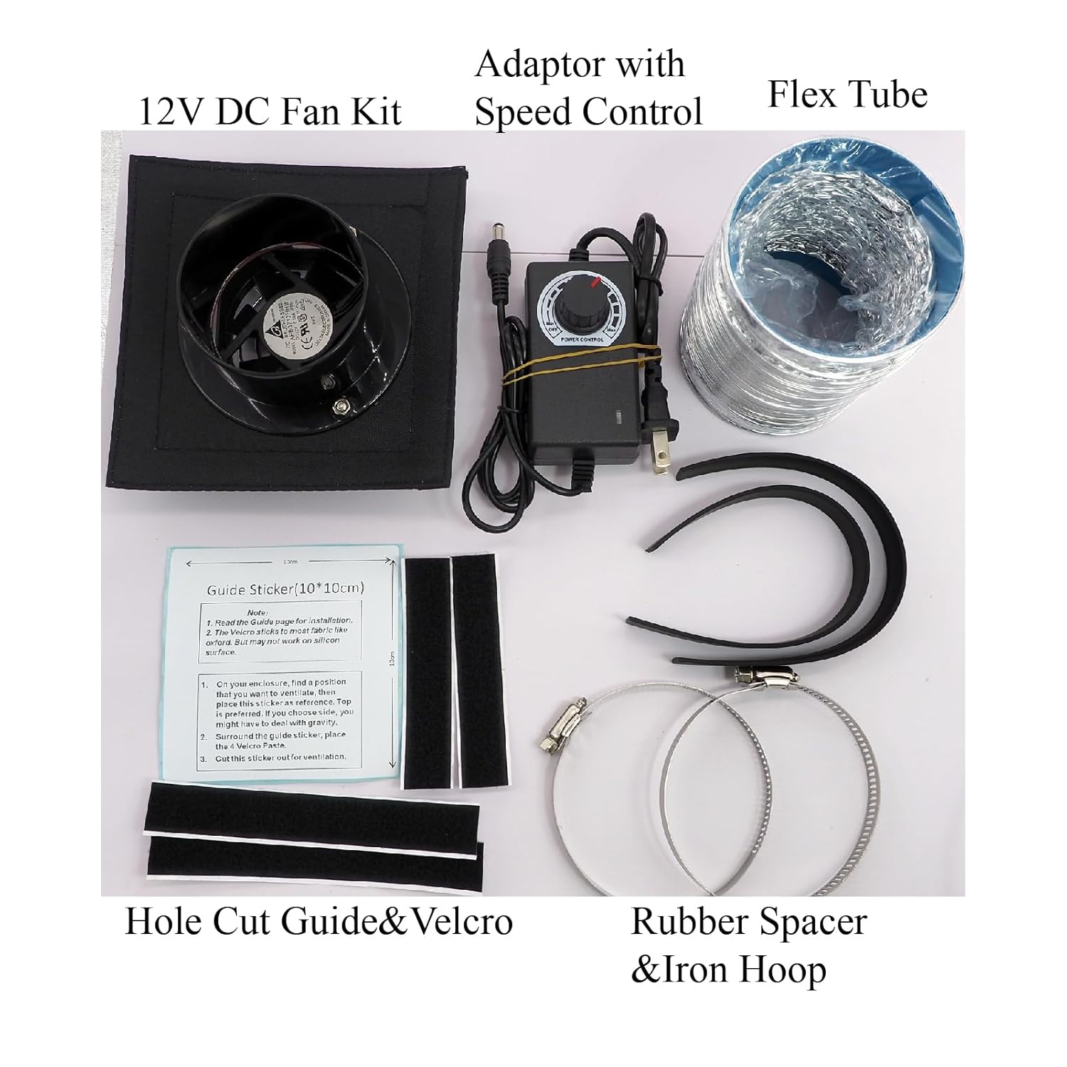 – High-quality 12V DC fan with speed control: The ventilation kit includes a durable fan that operates on a 12V DC power source and comes with speed control options, allowing you to adjust the airflow according to your needs.