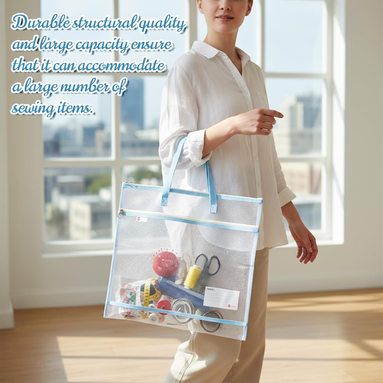 【Mesh PVC Material】The needlepoint bag is made of durable mesh PVC, providing durable and attractive sewing storage and smooth zippering. The reinforced material of the embroidery bag ensures its longevity, while the art portfolio bag is also waterproof, and the fabric pencil case protects your items from potential damage.