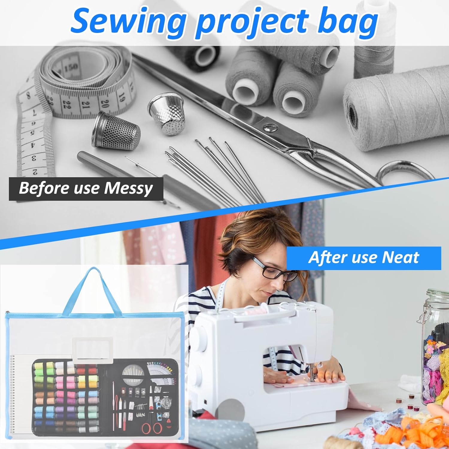 Package Includes – You will receive 8 large sew project bags, each measuring approximately 18 x 13 inches (46 x 34 cm). These craft bag organizer tote with handles are designed to store and organize sewing pieces, fabric squares, yarn, patterns, tools, and more—perfect for quilting, embroidery, and other DIY projects.