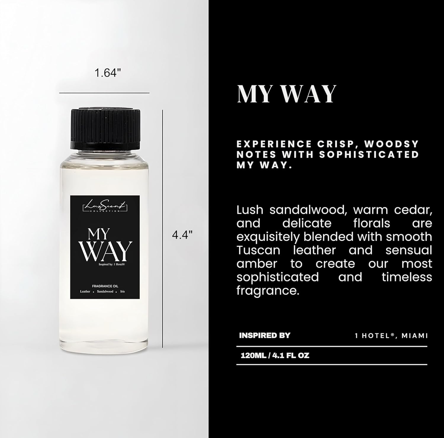 MY WAY Inspired by: 1 HOTEL MIAMI | Lush sandalwood, warm cedar, and delicate florals are exquisitely blended with smooth Tuscan leather and sensual amber to create our most sophisticated and timeless fragrance.
