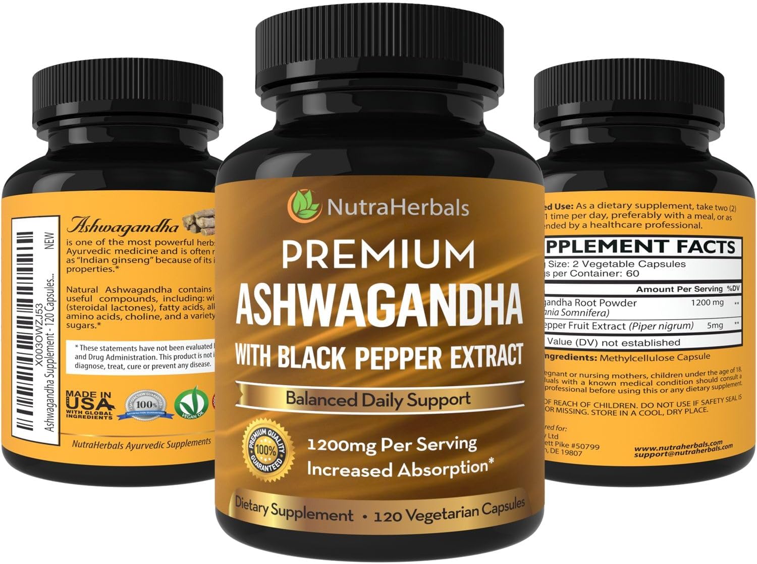 Bigger Bang For Your Buck: You’re getting more Ashwagandha goodness per capsule than anyone else. Our 1200 mg per serving formula provides the most potent supplement on the market with better absorption (due to the benefits of black pepper extract). Did we mention it’s GMO free, vegan safe with no additives or fillers? Loaded with withanolides our 120 capsule bottle offers unbeatable value.