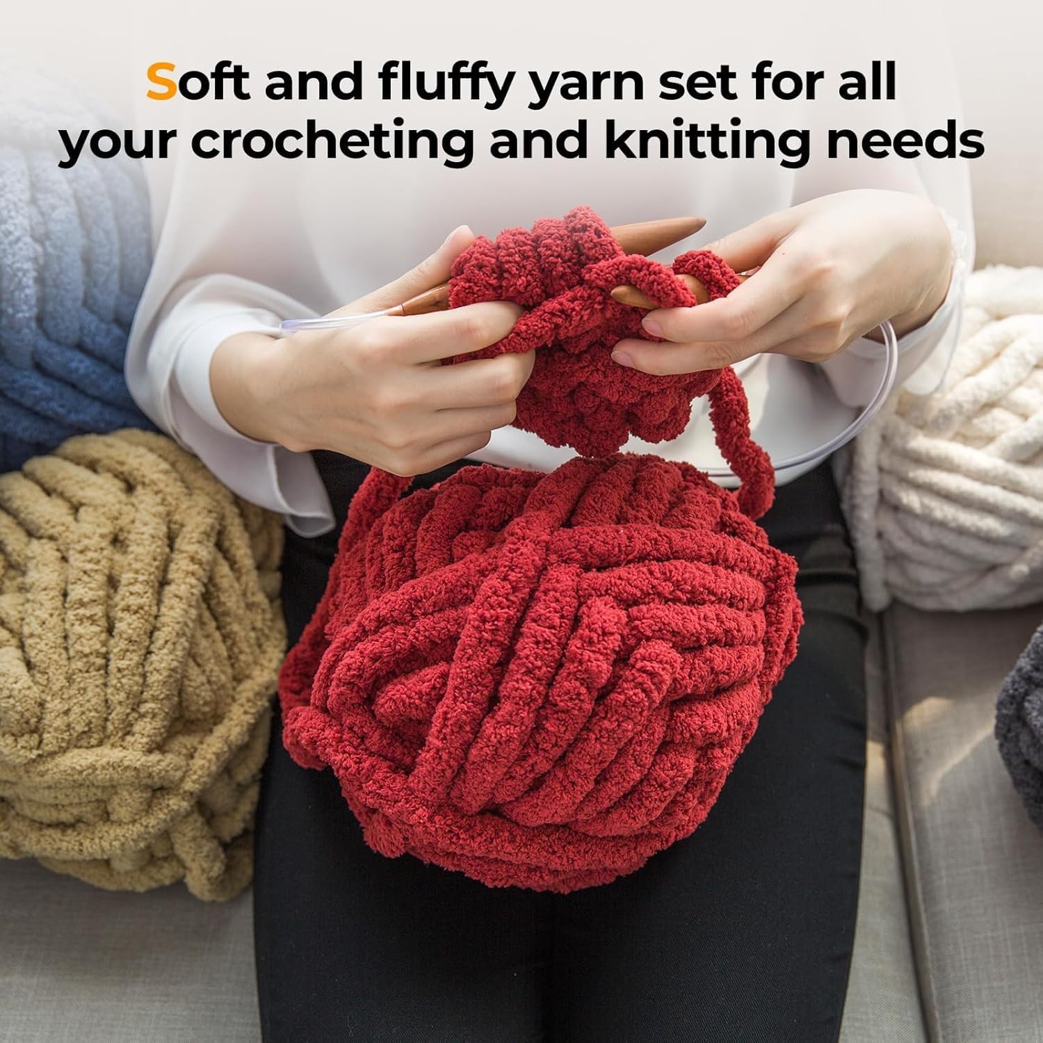 【Non-Toxic & Easy to Care For】Crafted from eco-friendly, non-toxic materials, jumbo yarn is free from harmful chemicals, making it safe for both you and the environment. It is machine washable (gentle cycle, low temperature) and easy to clean, ensuring hassle-free maintenance. Compared to traditional yarns, it is more durable, resistant to deformation, and designed to bring long-lasting joy to your knitting experience.