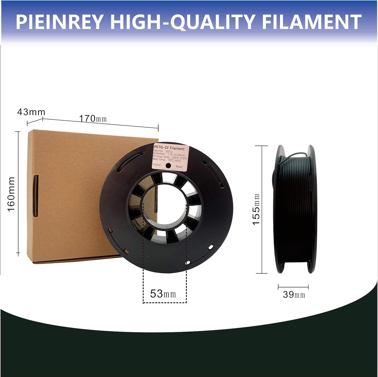 1.Attention: A.Dry before use for the highest print quality (65 °C, 8 h). Printing and Keeping Container’s Humidity < 20% RH (Sealed, with Desiccant). B.Do not use conventional brass nozzles! As the filament contains real carbon fibers, you have to use wear-resistant steel nozzles (≥ 0.4 mm; 0.6 mm is better). C.To get stronger Z-adhesion, please set a higher infill density and use an enclosed printer; lower the fan percentage to avoid overcooling.