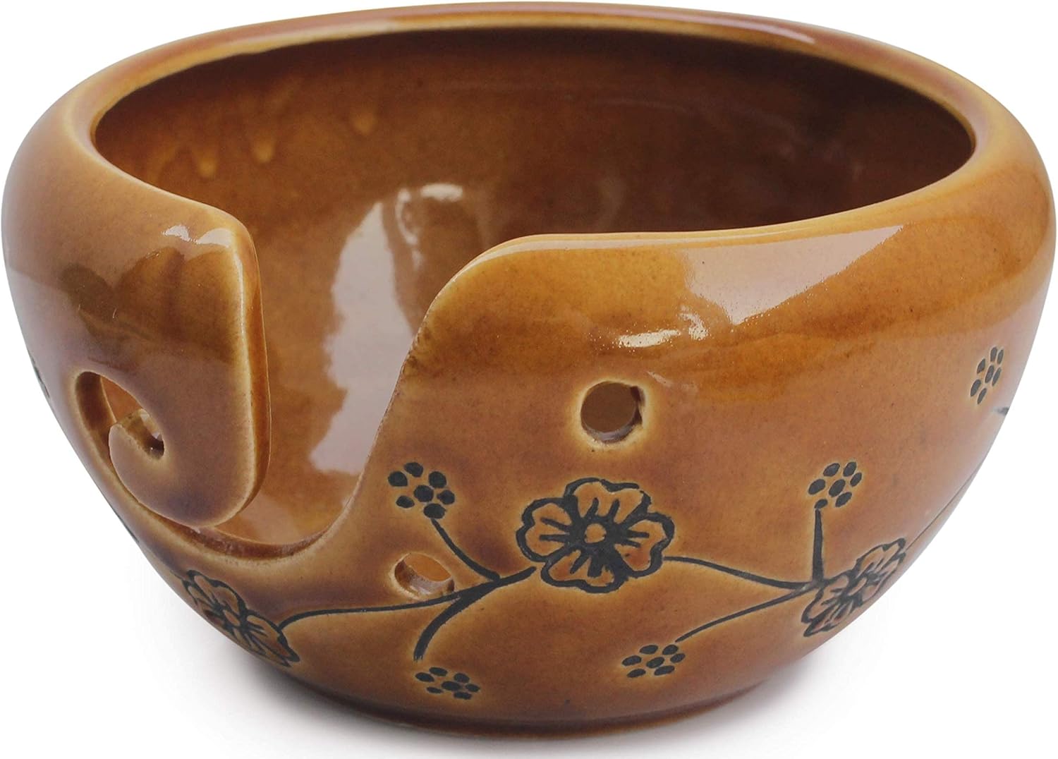Top Class Handmade Yarn Bowl!HAND Carved by Indian Artist!Top curving Design to keep Yarn inside!Perfect ceramic yarn bowl for knitters!Functional!