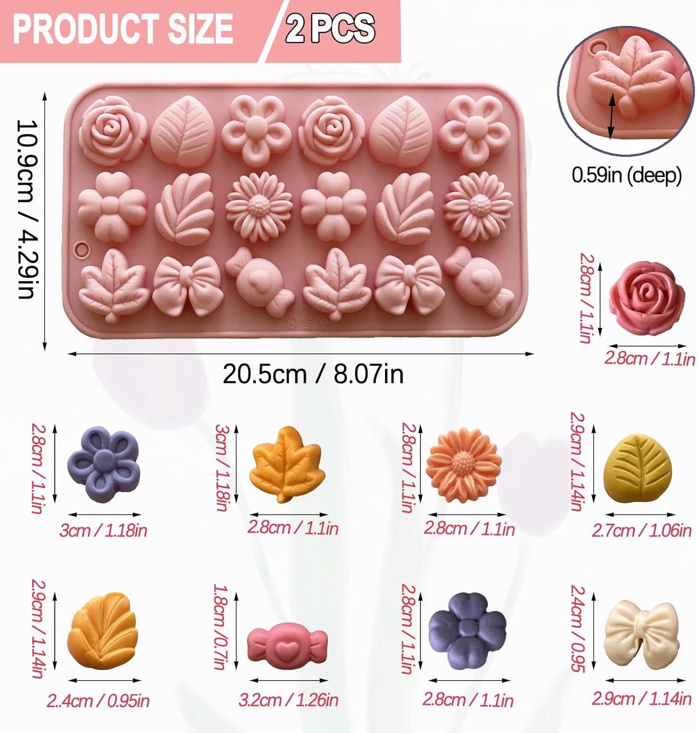 🌹【PRODUCT INCLUDED】 You will receive two pcs of pink flower chocolate molds, our flower silicone molds are perfect for making chocolate, candy jello and pudings