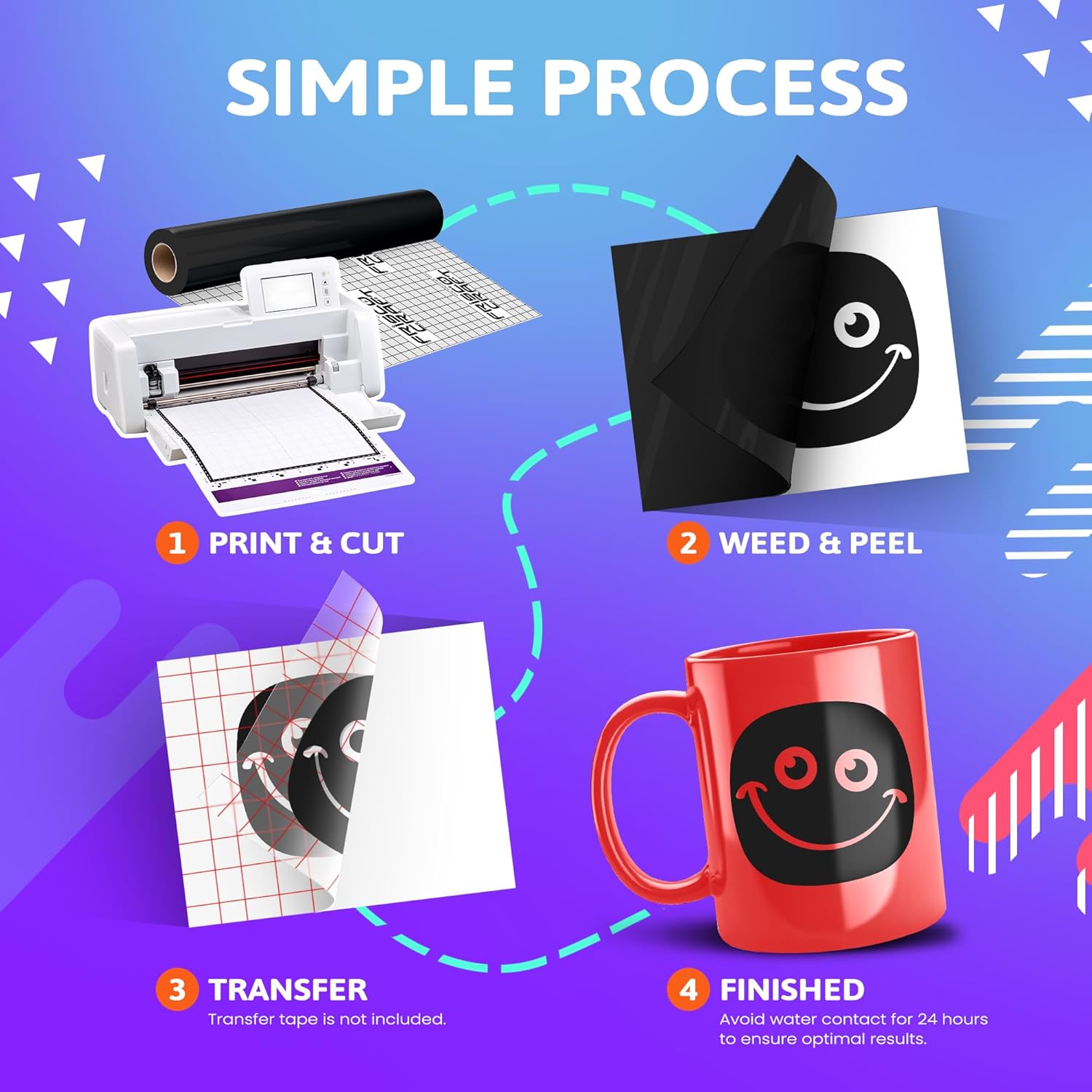 Versatile usage for indoor and outdoor projects. Compatible with popular cutting machines. Easy to cut, weed, and apply. Fade-resistant for long-lasting vibrancy.