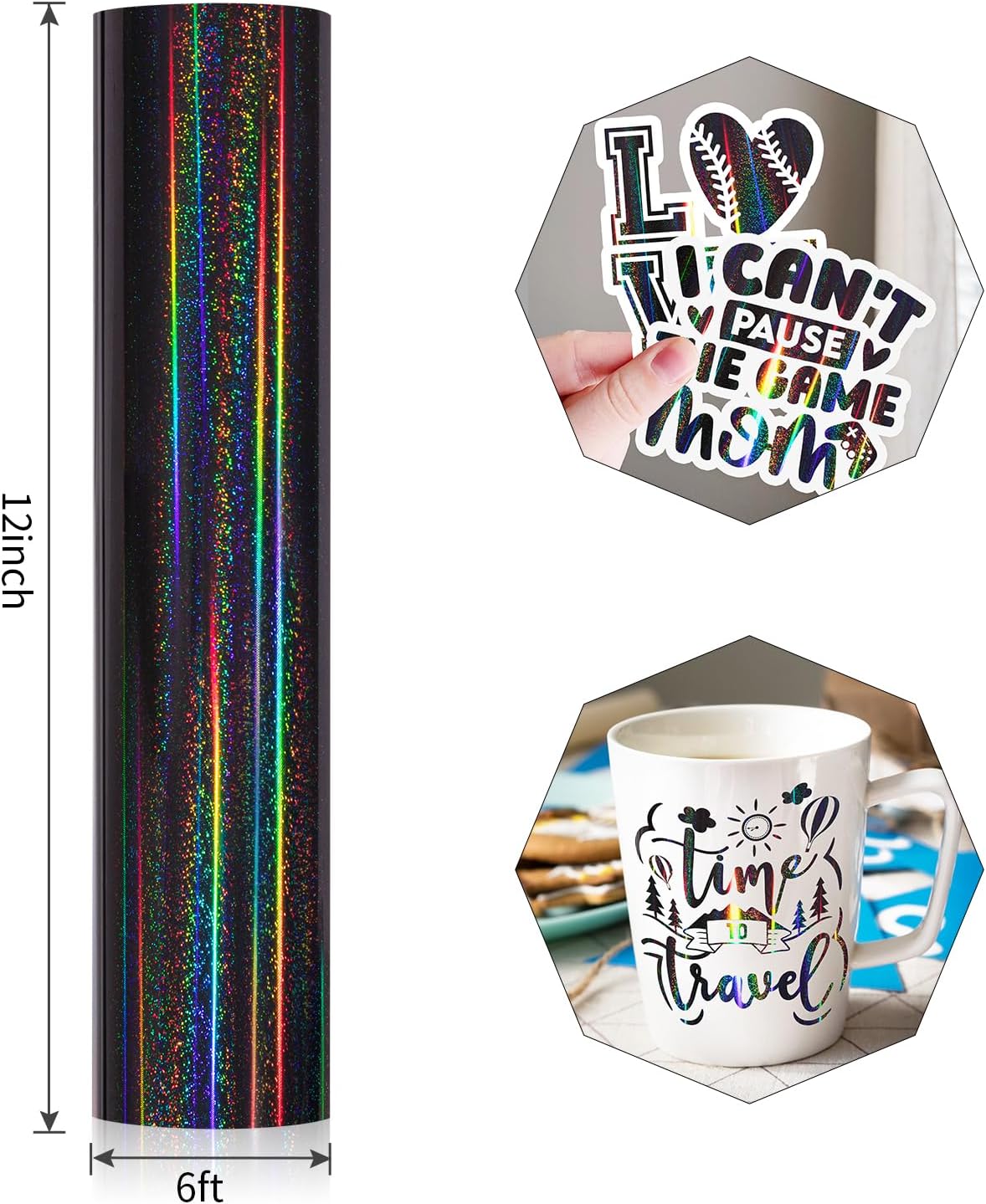 PET BACKING–Not like paper backing, PET film makes it easier to peel off the gorgeous holographic navy grey vinyl permanently from the cutting board without residue on it and keeps your design intact. You don’t need to endure the frustrating process of using it. Also, there is a clear film covering the black adhesive vinyl to protect the vinyl from scraping. Please peel off the clear cover film before cutting.