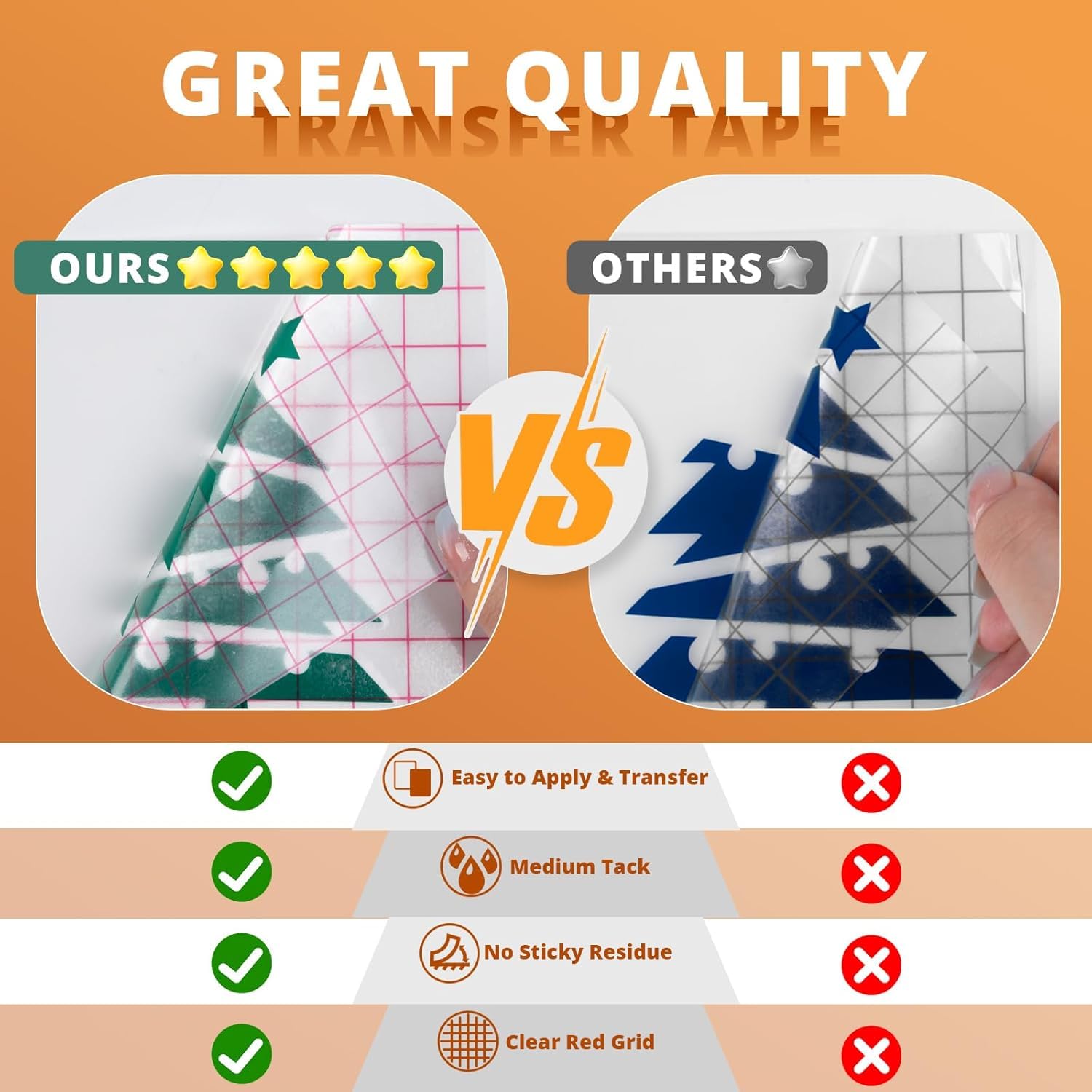 【PRECISE PLACEMENT & RED GRID 】Transfer paper for vinyl’s precision placement capabilities are enhanced by the inclusion of a red grid. This vinyl transfer tape grid provides a clear visual guide, allowing for accurate alignment and positioning of the material before transfer. Whether it’s lining up a vinyl decal on a wall or placing a sticker in the perfect spot on a notebook, the red grid ensures that every detail is in its place