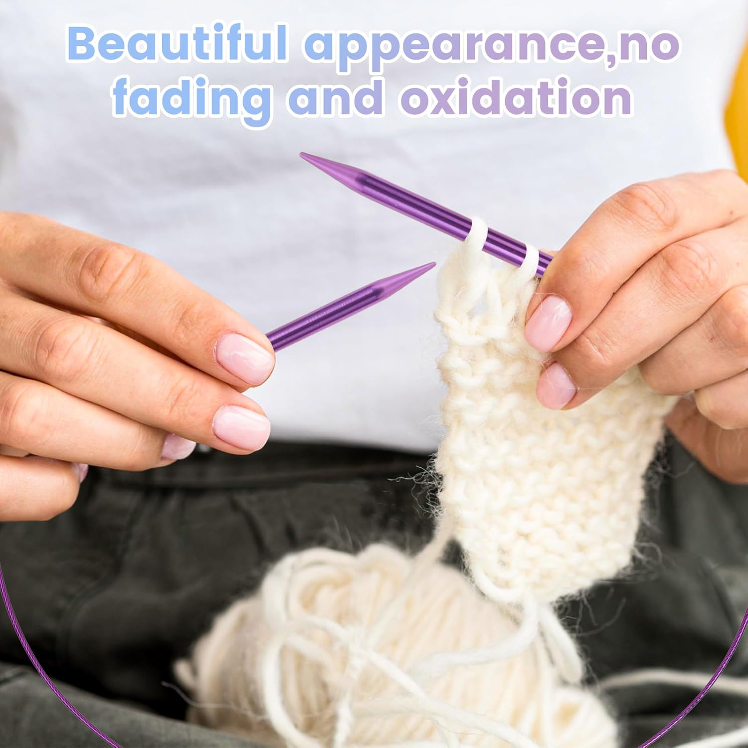 Smooth Aluminum Needles: These circular knitting needles are made from durable aluminum material. The lightweight aluminum needles have a smooth surface that glides effortlessly over the yarn without catching, ensuring a smooth knitting process.