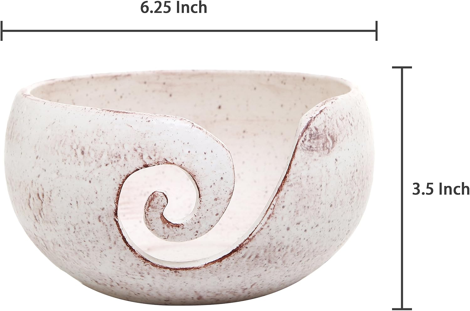 Tangle-Free Yarn Management: Featuring a thoughtfully designed curved cut-out, this bowl allows yarn to effortlessly glide through, keeping your threads smooth and tangle-free, making your crafting sessions more enjoyable and efficient.Elegant Cream Finish: With its soft cream-colored glaze, this ceramic bowl offers a timeless, neutral aesthetic that complements any décor, adding a touch of elegance to your knitting or crocheting space.Sturdy Ceramic Build: Made from high-quality ceramic, the bowl is both durable and stable, providing a reliable base that won’t easily tip over, ensuring your yarn stays securely in place as you work.Approximate Dimensions (in inches): 3.5 H X 6.25 Diameter.