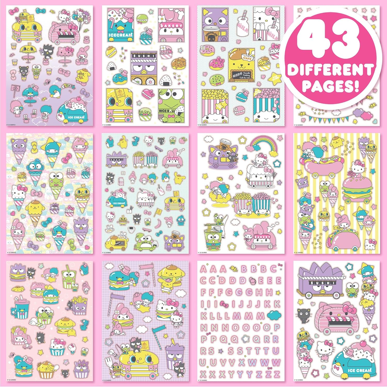 43 UNIQUE PAGES: Play in a world of adorable imagination with 43 different pages of stickers featuring your favorite characters, alphabet stickers to spell out messages, and kawaii decorating stickers!