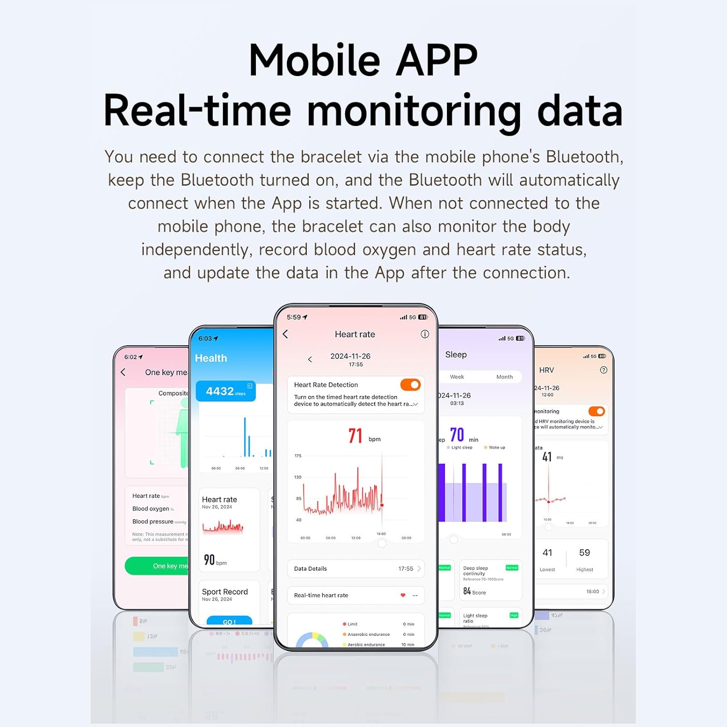 【Multiple Sports Modes & Precise 24/7 Tracking】 With built-in sports modes (such as running, yoga, swimming, etc.), this bracelet records your steps and activity data in real-time, providing comprehensive data support for your fitness journey.